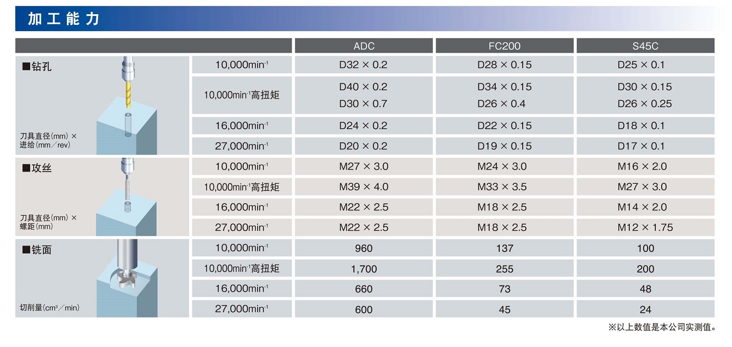 • 27000转高速主轴 在小刀具及高光切削中,提供高线转速。